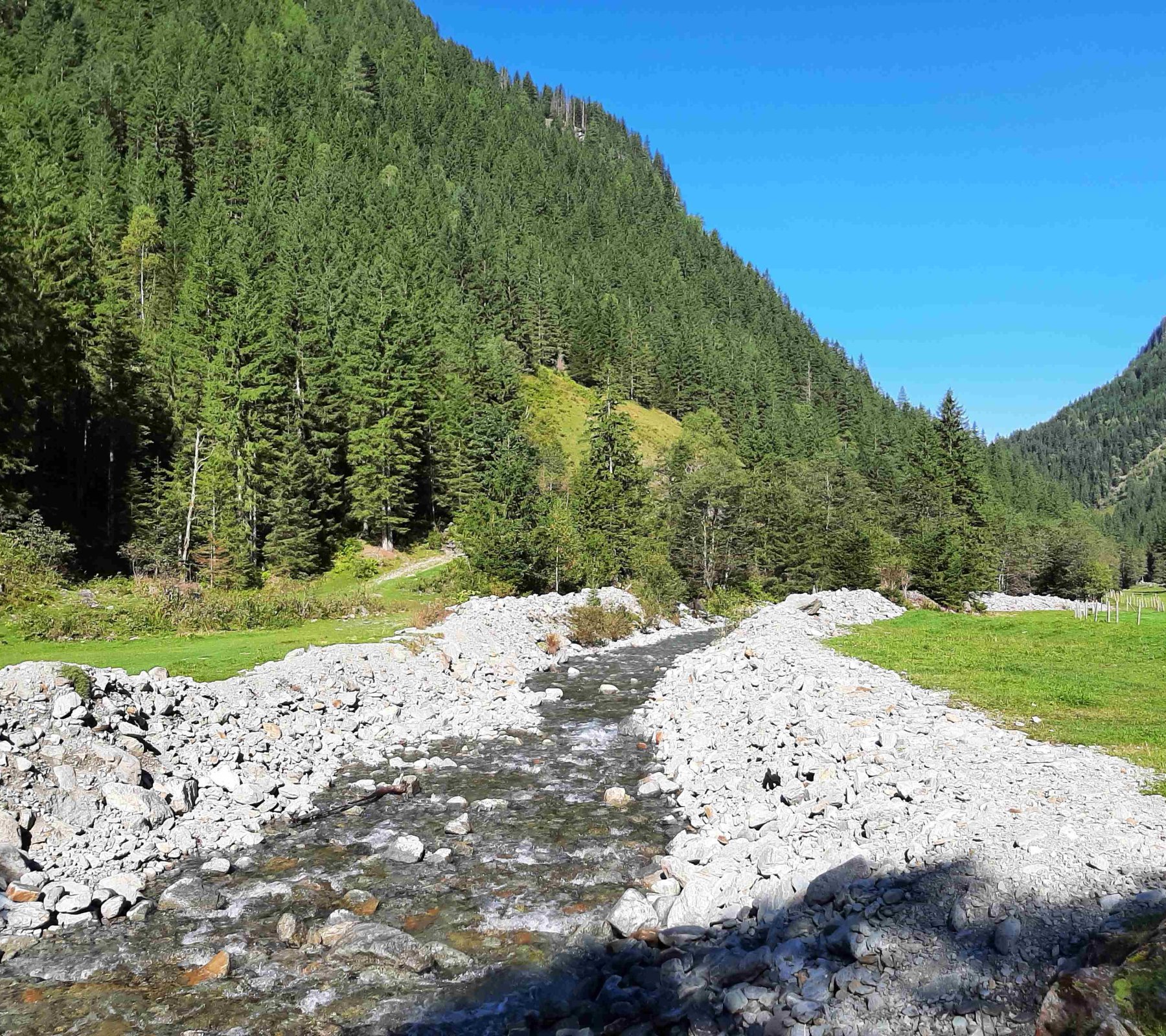5 Minuten vor der Alm führt eine Brücke über den Obertalbach und wir erreichen nach etwas mehr als einer Stunde wieder den Parkplatz.