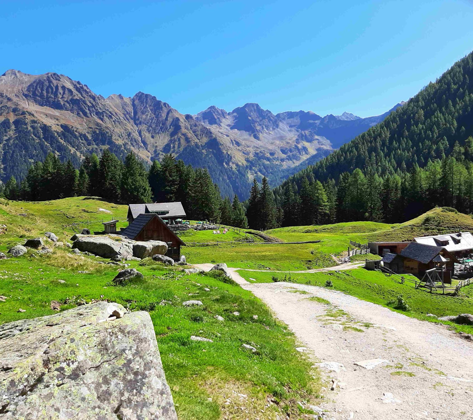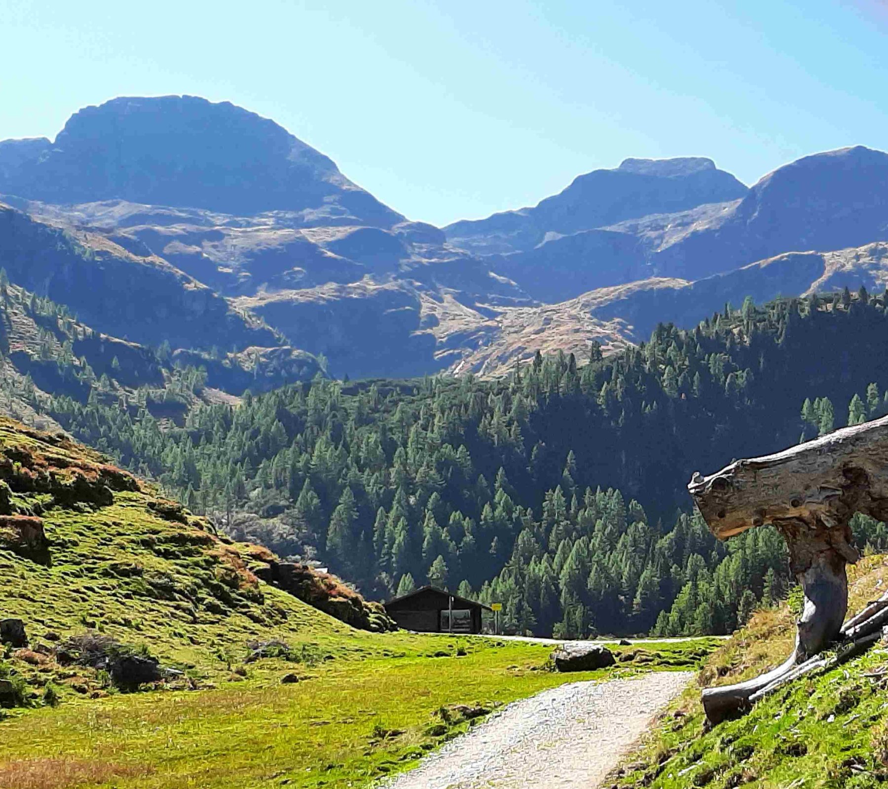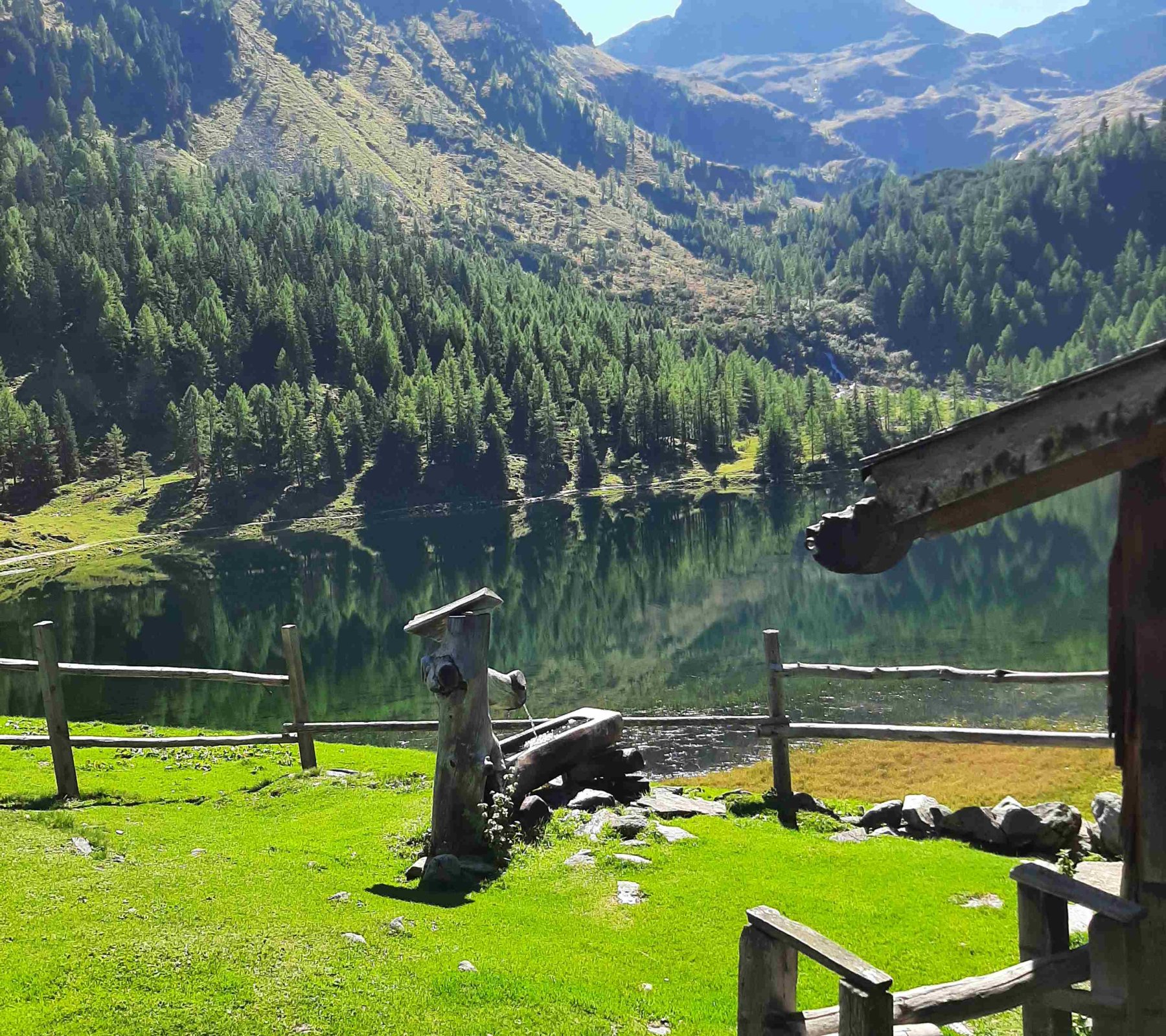 In der Duisitzkarseehütte kehren wir ein. Dann geht es wieder hinunter. Diesmal bleiben wir bis kurz vor der Eschachalm auf der Forststrasse.