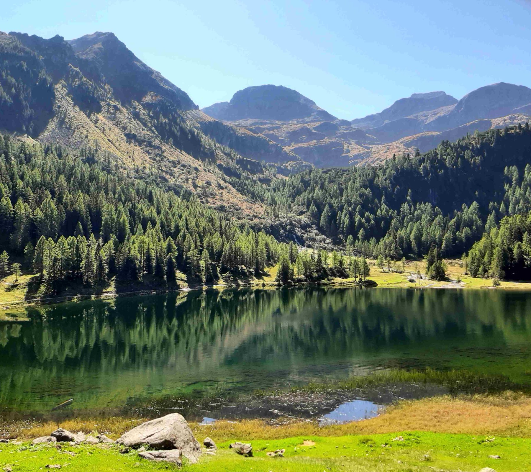Jetzt geht es auf der Forststrasse gemütlich weiter (über den Steig erspart man sich nur 10 Minunten). Nach einem dann doch etwas steilerem Stück erreichen wir nach 1 Std und 30 Min den Duisitzkarsee.